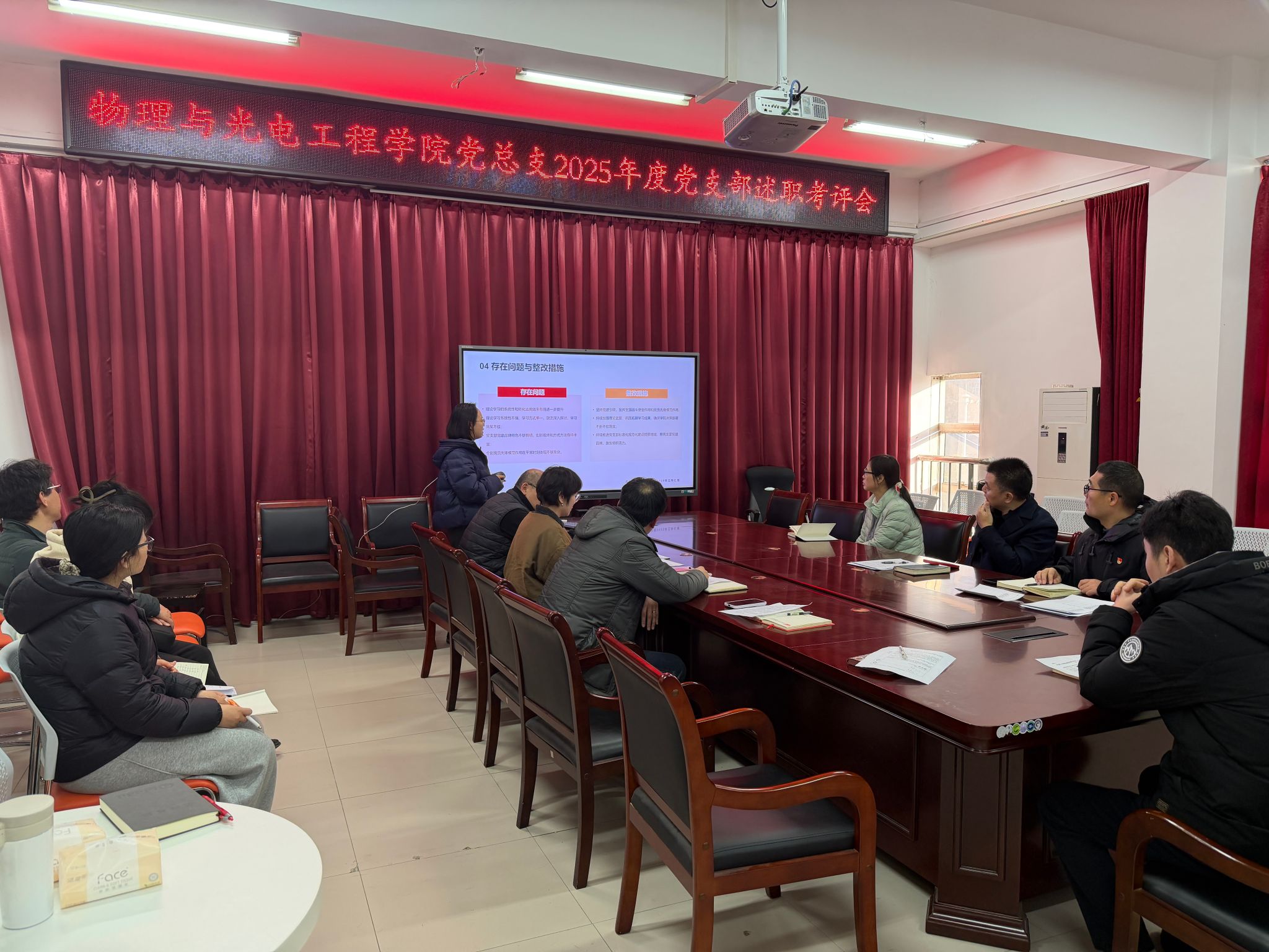 会议严格对标《关于开展2025年度党的建设三级量化考核工作的通知》要求,旨在全面检验各党支部年度工作成效,夯实基层党建基础。会上,学院各党支部书记依次进行现场述职。各支部书记紧密围绕学习贯彻习近平新时代中国特色社会主义思想、落实“三会一课”制度、发挥政治功能和组织功能、推动党建与教学科研管理等中心工作深度融合、加强党员教育管理监督等方面,系统汇报了一年来履职尽责情况和工作实绩。述职坚持问题导向,各支部在展示亮点的同时,深入查摆了自身在理论武装深度、工作创新力度、联系服务师生广度等方面存在的不足,并提出了切实可行的整改思路和努力方向。